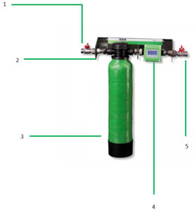 1. Absperrventile im Ein- und Ausgang erlauben drucklosen und problemlosen Wechsel des Mischbettharzes